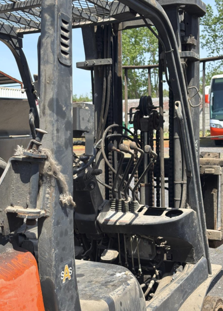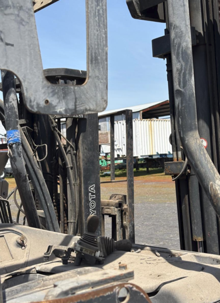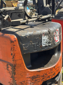 3.- 1 GRÚA A COMBUSTIÓN MARCA TOYOTA MODELO FORK LIFT TRUCK DE COLOR NARANJO. MÍNIMO $ 1.500.000